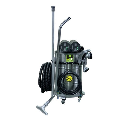 HafcoVac Certified Explosion-Proof Stainless Steel Industrial Vacuums are the perfect solution for demanding environments. Using naturally strong stainless steel drums means they are highly resistant to water, acids, alkaline solutions and chlorine resulting in a long-life and a lower cost of ownership. They are excellent for use with high temperatures and are also fire resistant. Ready to work on the biggest clean-up jobs right from the box, all you supply is the air.