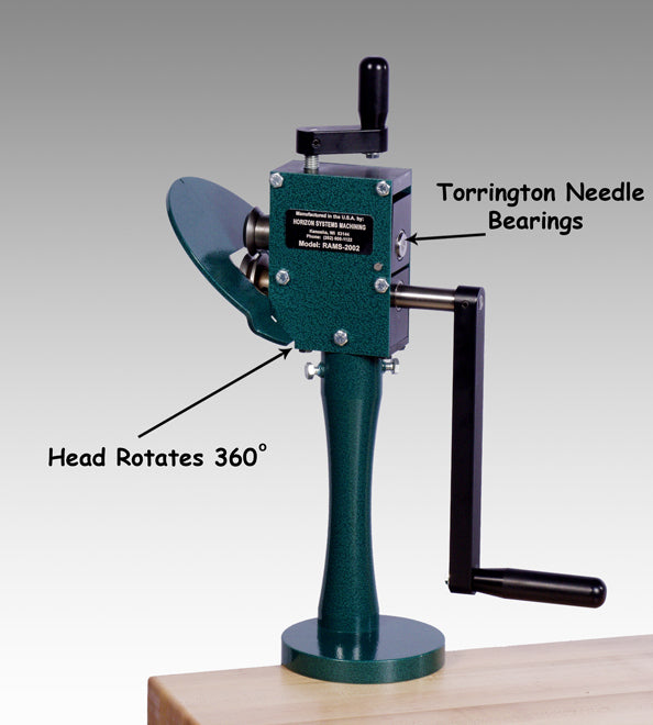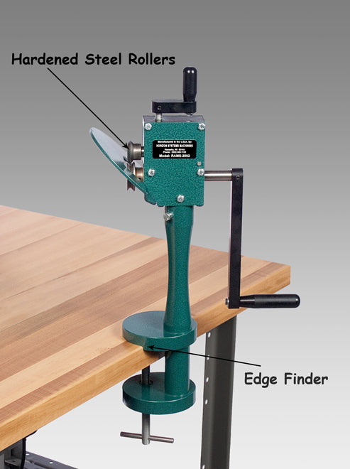 This unit is designed for forming a 7/32" right angle flange, for both inside and outside radiuses. This unit can also be used on duct elbows as well. The unique design features Torrington Needle Bearings and hardened rollers. It can be bench mounted with “EZ Edge Finder".