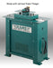This unit comes with a 1 HP electric motor, 110-115V single phase. We use Torrington Needle Bearings and hardened steel components throughout, (62 Rockwell). The cabinet is heavy gauge steel with a Hammertone Green Finish.